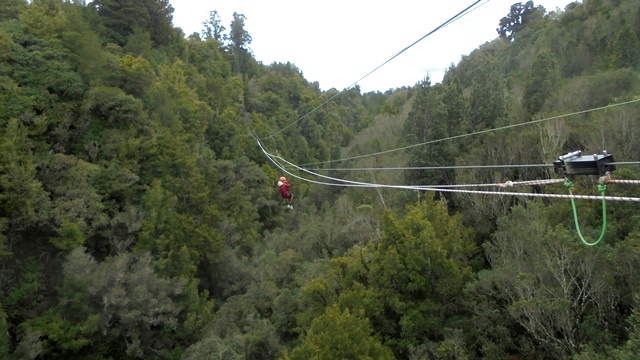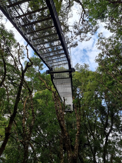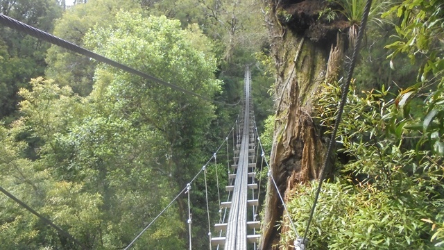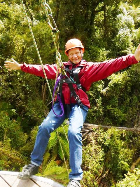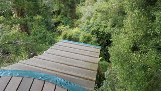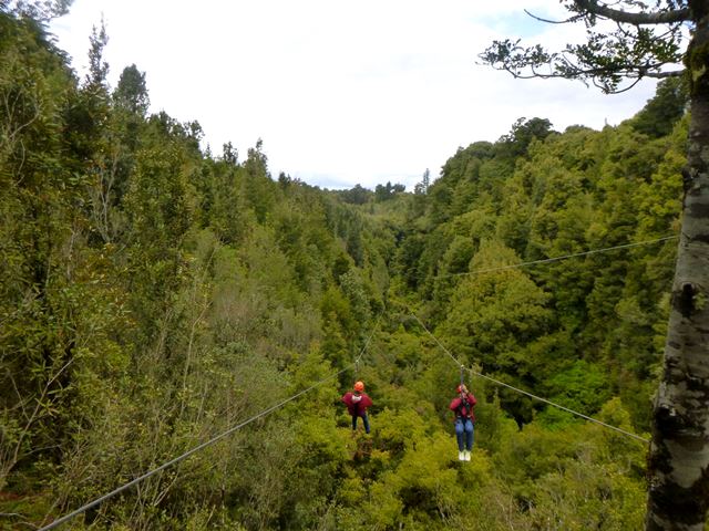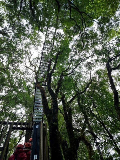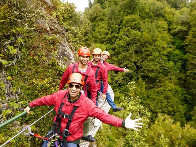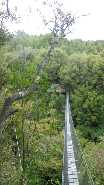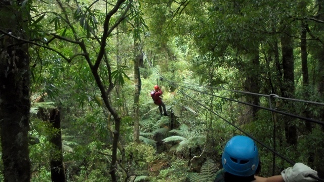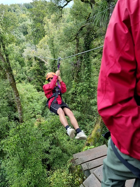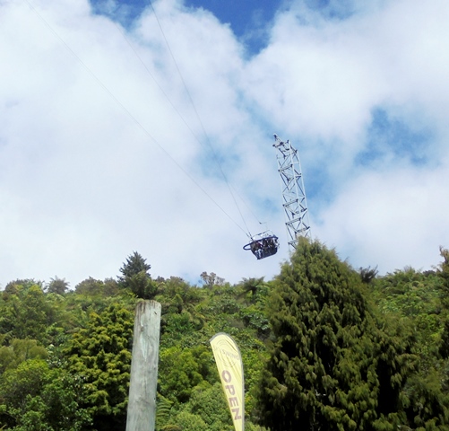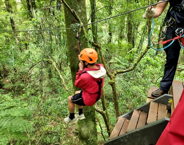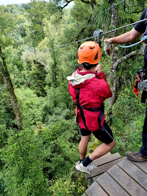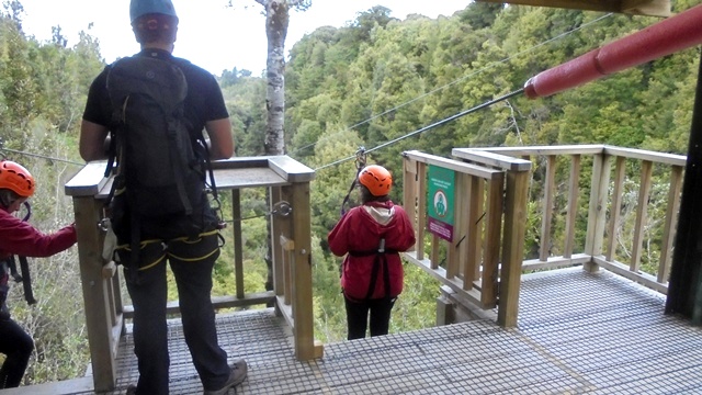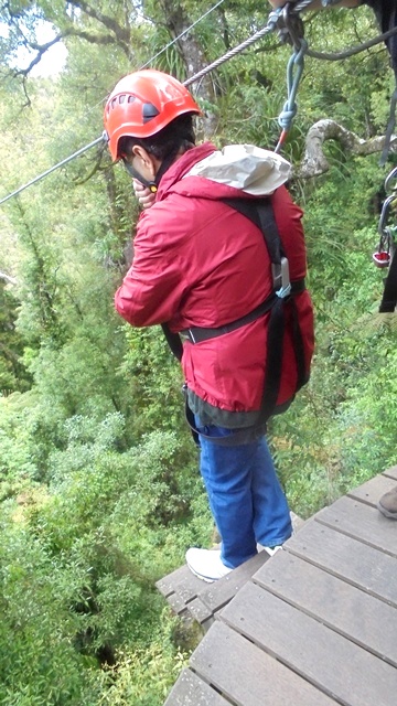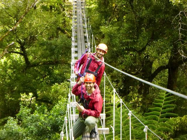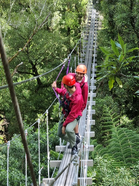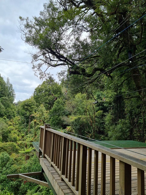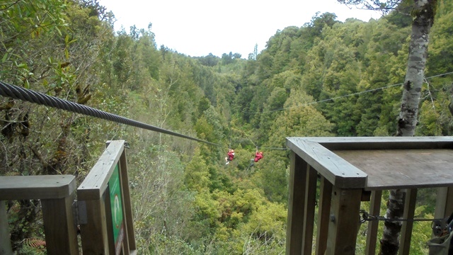 We left early Saturday morning and were there by ten. We got settled in and our first activity was something innocuously called the Rotorua Canopy Tour. It is a tour of a native New Zealand forest, except not on the ground. You traverse the forest on swing bridges, ziplines and walkways that are held up, to all appearances, by invisible skyhooks.