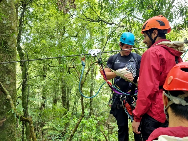 Before we started up, the guide demonstrated how to zipline on the demo setup on the ground. There were lots of dos and don’ts, including the proper way to ascend the stairs.