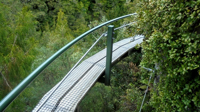 The ziplines were amazing—fun and exhilarating. There were also two other bits of excitement. One was a narrow walkway built around the side of a hill. The railing was only on the inside!