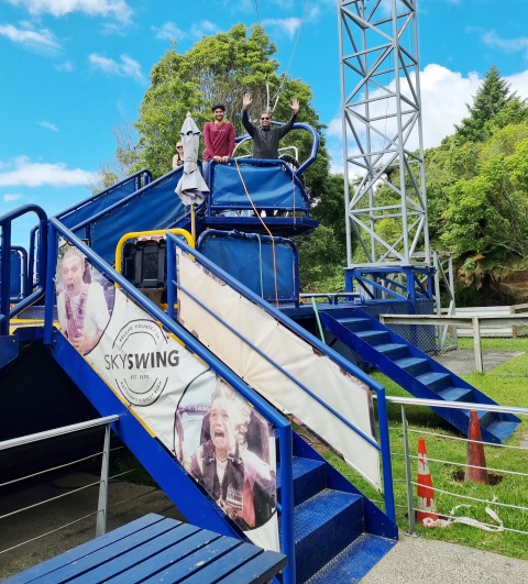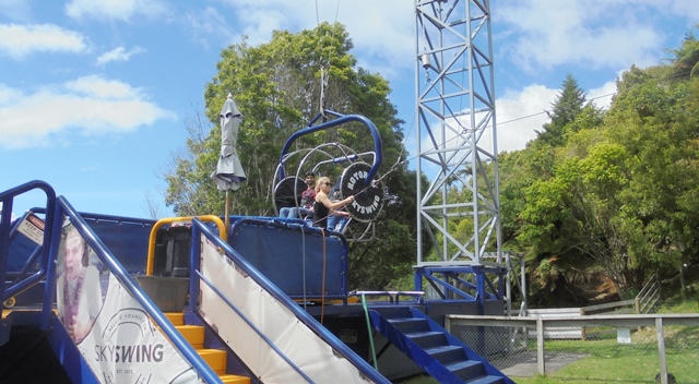 There was one more adventure that Tehmus and Yazdy did, but Xerxes and I decided we’d had enough of aerial activities. It’s called the sky swing and, it’s well named because that’s what you do—get pulled up into the sky and swing. Among other things, it was the pictures of the people on the stairway that put me off.