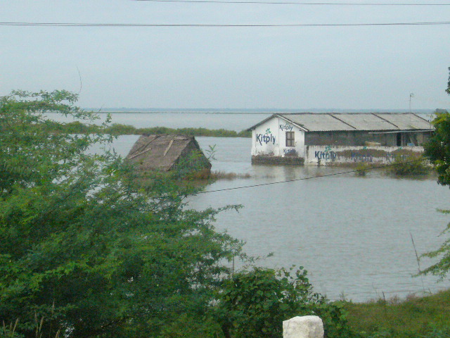 The next morning the water level had dropped significantly and the even better news was that the clouds were breaking up and the sun was peeking through.  We drove out to our next destination—Pondicherry.  The farther we went the less evidence of flooding we saw but we did learn that 180 people had been killed in flooding in the area over the past couple of days.   It sort of put my worries about snakes and mosquitoes into perspective.