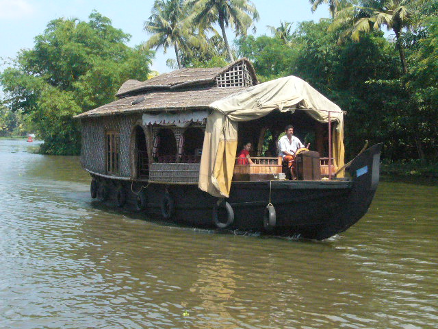 We had started on the east coast of south India and now were almost on the west coast where big lakes and rivers join up to the Arabian Sea.  The highlight of a visit to Kerala is supposed to be a night on a houseboat exploring the backwaters.  We had a boat to ourselves with James, the captain and Bijou, the cook.