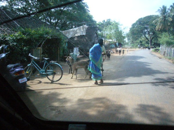 I’ve mentioned the fun of driving in Mumbai.  I could write pages about the adventure of driving in rural India.  People don’t pay much attention to lanes.  This isn’t too much of a problem except on the freeways.  It is somewhat disconcerting to be driving in the passing lane and suddenly see an ox cart or something larger coming toward you.  I mentioned this phenomenon to Vilva, the driver and his comment was “Yeah.  That’s a problem here.”