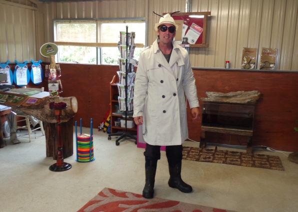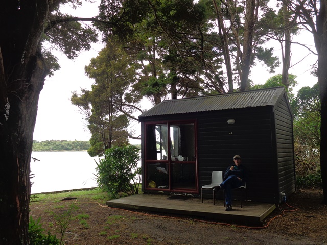 While there we met another interesting person, William Bisset, who is making a television documentary on the interesting people and the history of Southland.  He is travelling through the Catlins with nothing but his clothing and cameras and he knocks on peoples’ doors and asks them if he can stay with them.  He works to earn his keep.  He is currently staying at Earthlore and helping Gordon with various maintenance jobs.  And he is staying in the gypsy caravan!