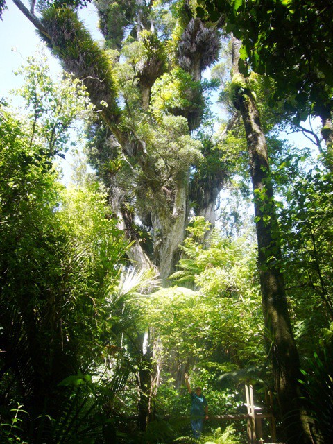 We saw the biggest and oldest known rata tree in NZ – estimated to be about 800 hundred years old with a height of 42 metres (142 ft) and a girth of 11.9 metres. A Rata starts life by germinating in the branches of a host tree.  It then grows downwards and eventually completely surrounds and kills the host.  As a result, rata trees are almost always hollow.