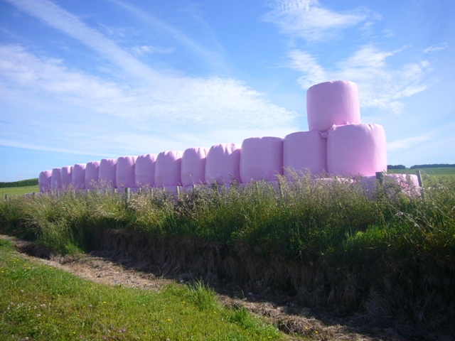 This is hay-making season and a lot of farmers have hay in plastic covered bales waiting to be sold or stored.
