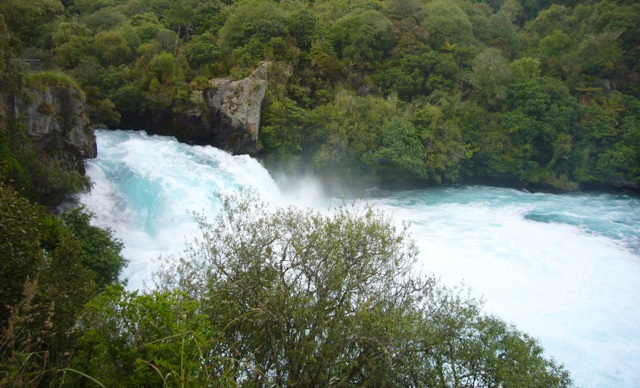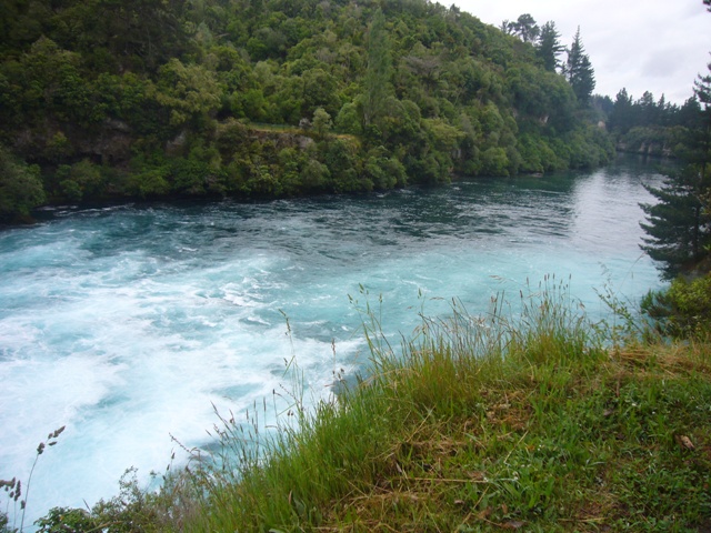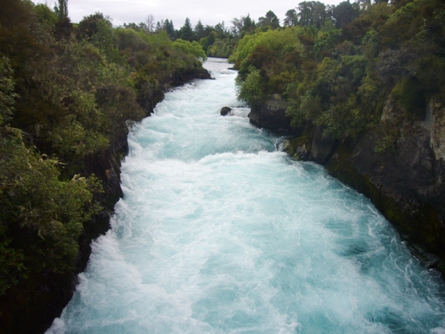 A must see attraction just on the outskirts of Lake Taupo is Huka Falls.  It is a gorge where the Waikato River, New Zealand’s longest river leaves the lake and starts its flow.  Because a huge amount of water is trying to get through a small area there is a lot of activity and a beautiful waterfall.