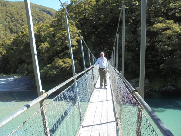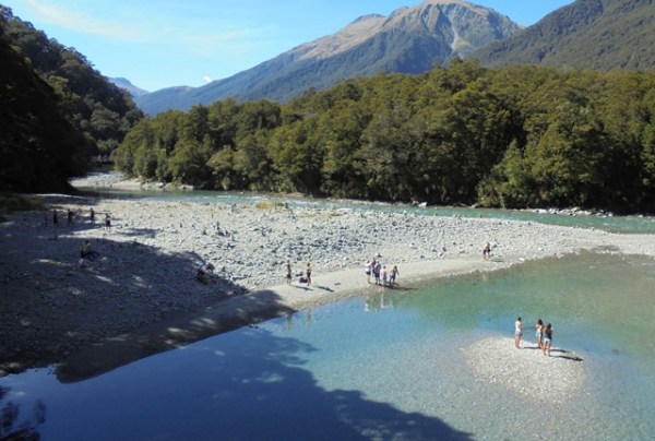 There are also a number of interesting geological features caused by the glaciers and lots of streams coming down from the mountains. One area is called the Blue Pools which are two deep pools, blue, of course, formed by glaciers on the Makarora River.