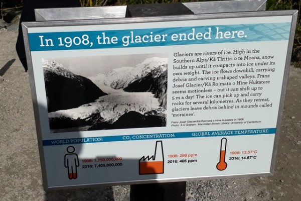 Everywhere there are signs showing where the glacier ended in previous years and you can see how much it’s gone back: