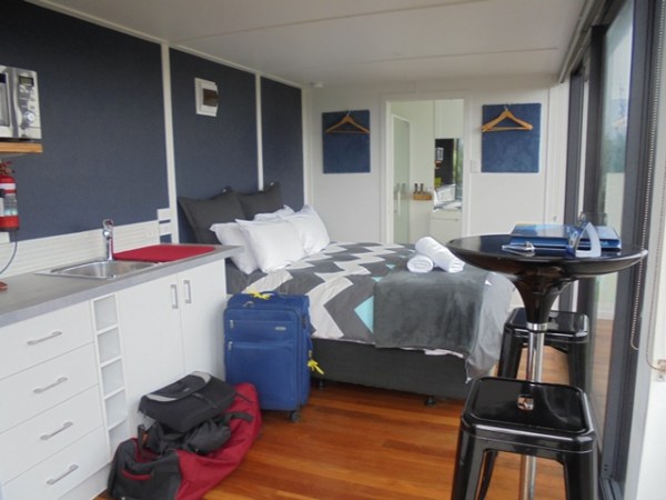 In Ross we stayed at a beautiful place right on the beach. It was an old shipping container which had been converted into a self-contained studio unit. The wind and the rain made it very noisy and a little scary!