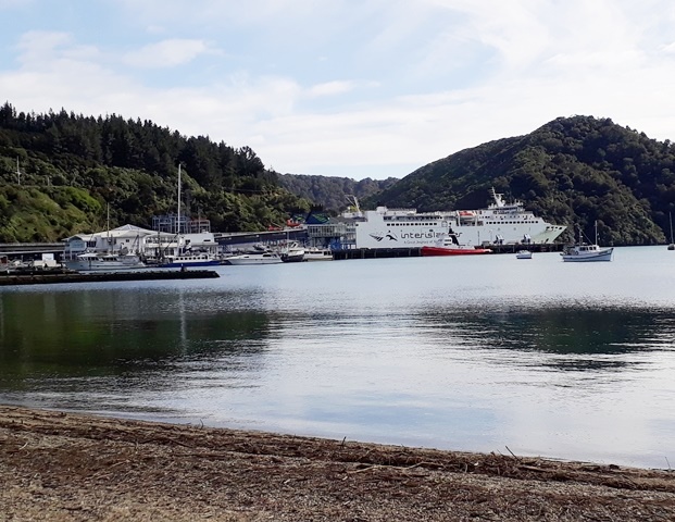 The big ship is the Interislander ferry which runs between Picton and Wellington and connects the North and South Islands.