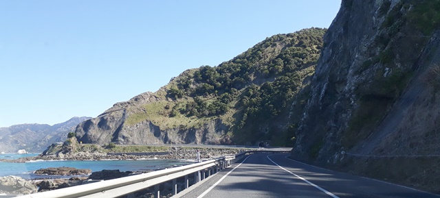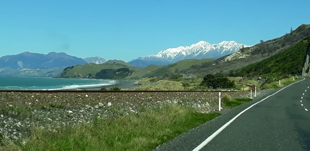 After Blenheim, the road runs along the coast and you have the ocean on one side and the mountains on the other.