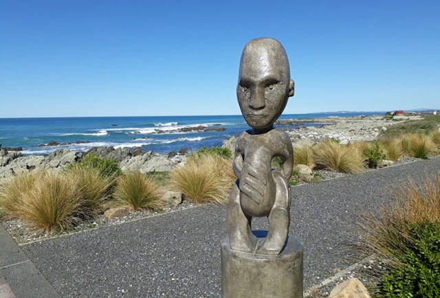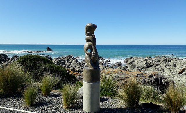 Once in Karamea, we checked in and went exploring. There is an interesting sculpture of a Maori warrior riding on the back of a huge eagle.