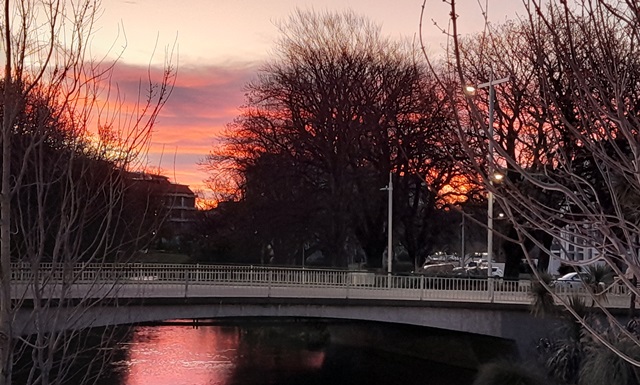 We got into town (after spending a lot longer exploring Hagley Park than we anticipated) and had dinner and headed back at sunset – tired after having walked almost 10 kms!!