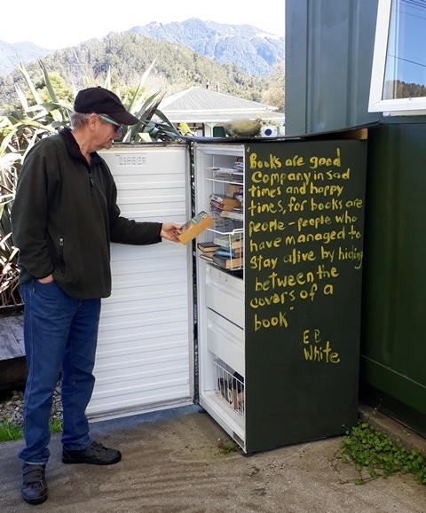 The public “library” is an old fridge.