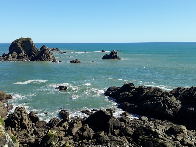 Heading back to the coast, we stopped at Cape Foulwind. The Cape got its name after Captain Cook referred to it as “The Place of Foul Winds.” A few years ago when we had driven here the area lived up to its name and we opted against walking to the light house and seal colony, but today it was Cape Nowind and there were also no other people!