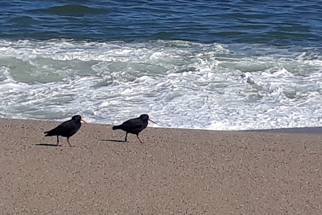 The beach was deserted except for some oystercatchers.