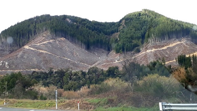 Several of the slips were the result of harvesting pine forests along the route. When the pines are cut down, there is nothing to hold the soil in place during heavy rain.