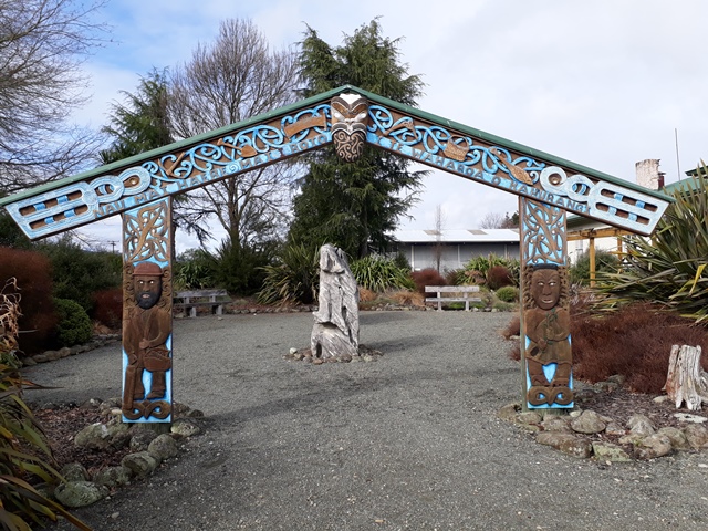 To reach Pohara we drove through parts of the Kahurangi National Park and the gateway to the park was marked by an information site in a Waharoa (native garden). The big rock in the centre was dislodged from the nearby mountain and is the Kaitiaki (Guardian Rock), protecting nature and all those who travel through it.