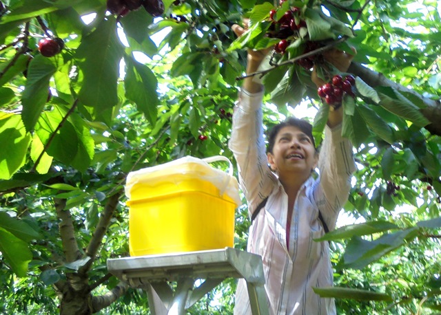 They had amazingly stable ladders and she pointed us to the trees with the most ripe cherries.