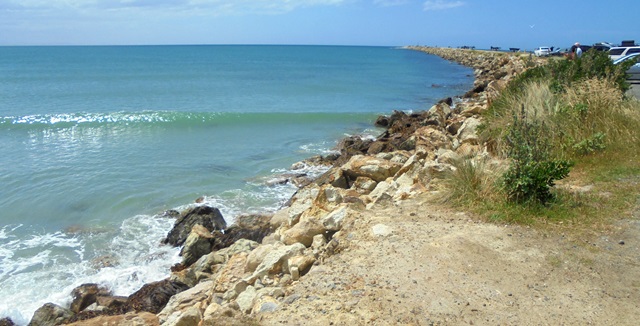 The following day we drove up the inland side across from the Otago Peninsula to Aramoana. At the end of the point there is a causeway out into the ocean. Here is the causeway we saw from the albatross colony the day before.