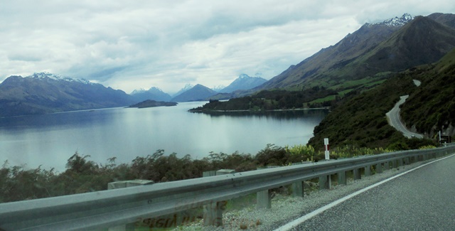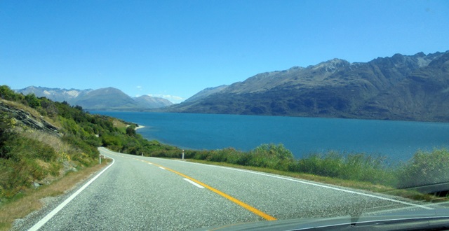 Lake Wakatipu was formed by glaciers and is long and narrow. We approached from the southern end and followed the lake shore all the way.